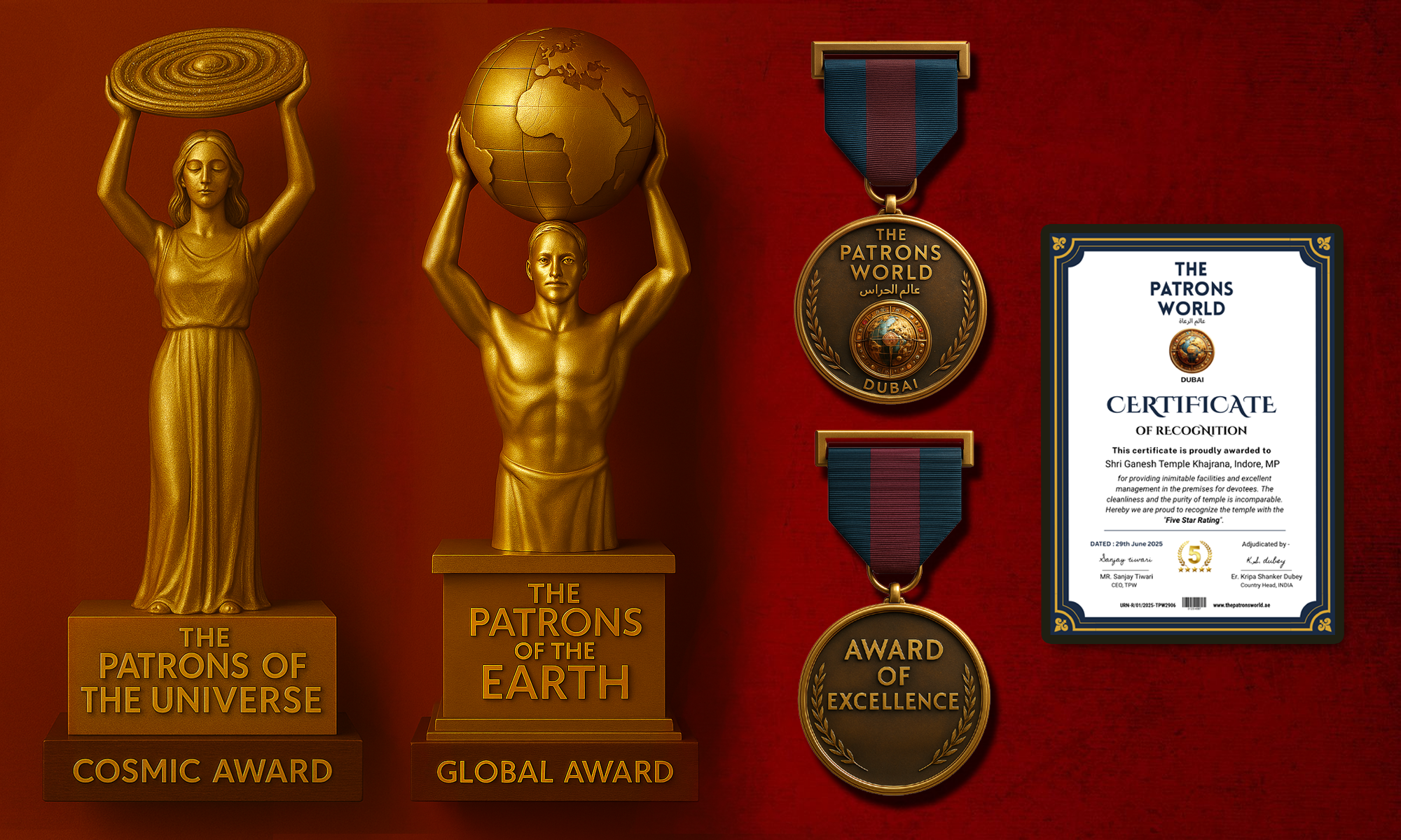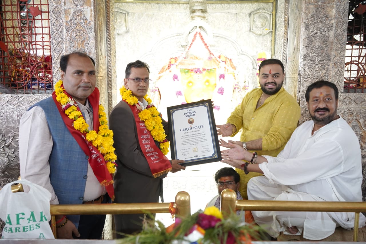 29 th June 2025 : Khajrana Ganesh Temple located in Indore was awarded the prestigious 5 star rating by The Patrons World. The certificate was handed over to the temple management by the company's CEO Sanjay Tiwari and Country Head Kripashankar Dubey.